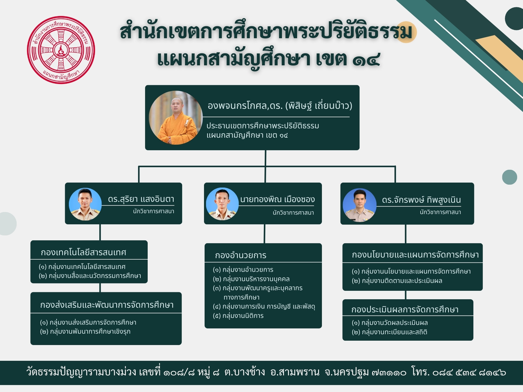 โครงสร้าง สำนักเขตการศึกษาพระปริยัติธรรม แผนกสามัญศึกษา เขต ๑๔