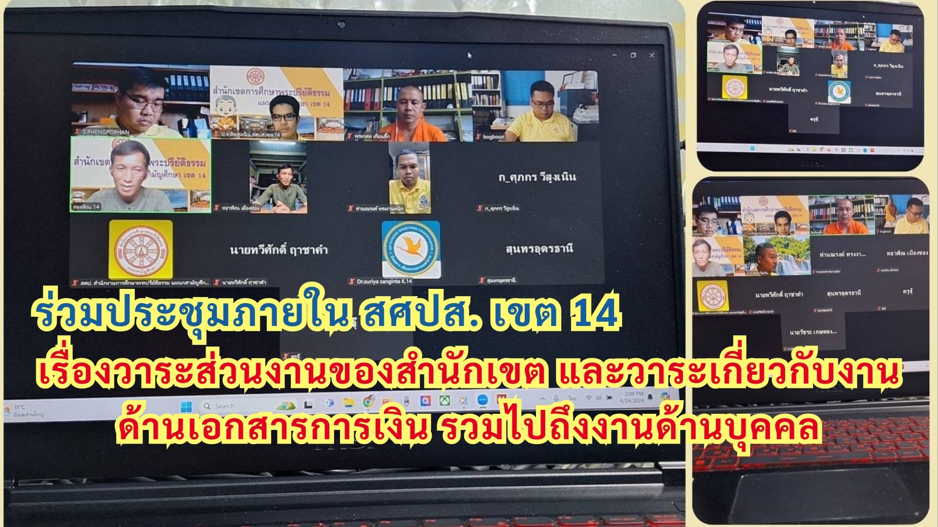 เมื่อวันที่ 24 มิถุนายน 2567 ได้มีการประชุมสำนักเขตการศึกษาพระปริยัติธรรม แผนกสามัญศึกษา เขต 14 (สศปส.เขต 14) เพื่อหารือในวาระต่างๆ ที่เกี่ยวข้องกับการดำเนินงานของสำนักเขต ทั้งในส่วนของงานเอกสารการเงินและงานด้านบุคคล เพื่อให้การปฏิบัติงานเป็นไปอย่างเรียบร้อยและมีประสิทธิภาพ