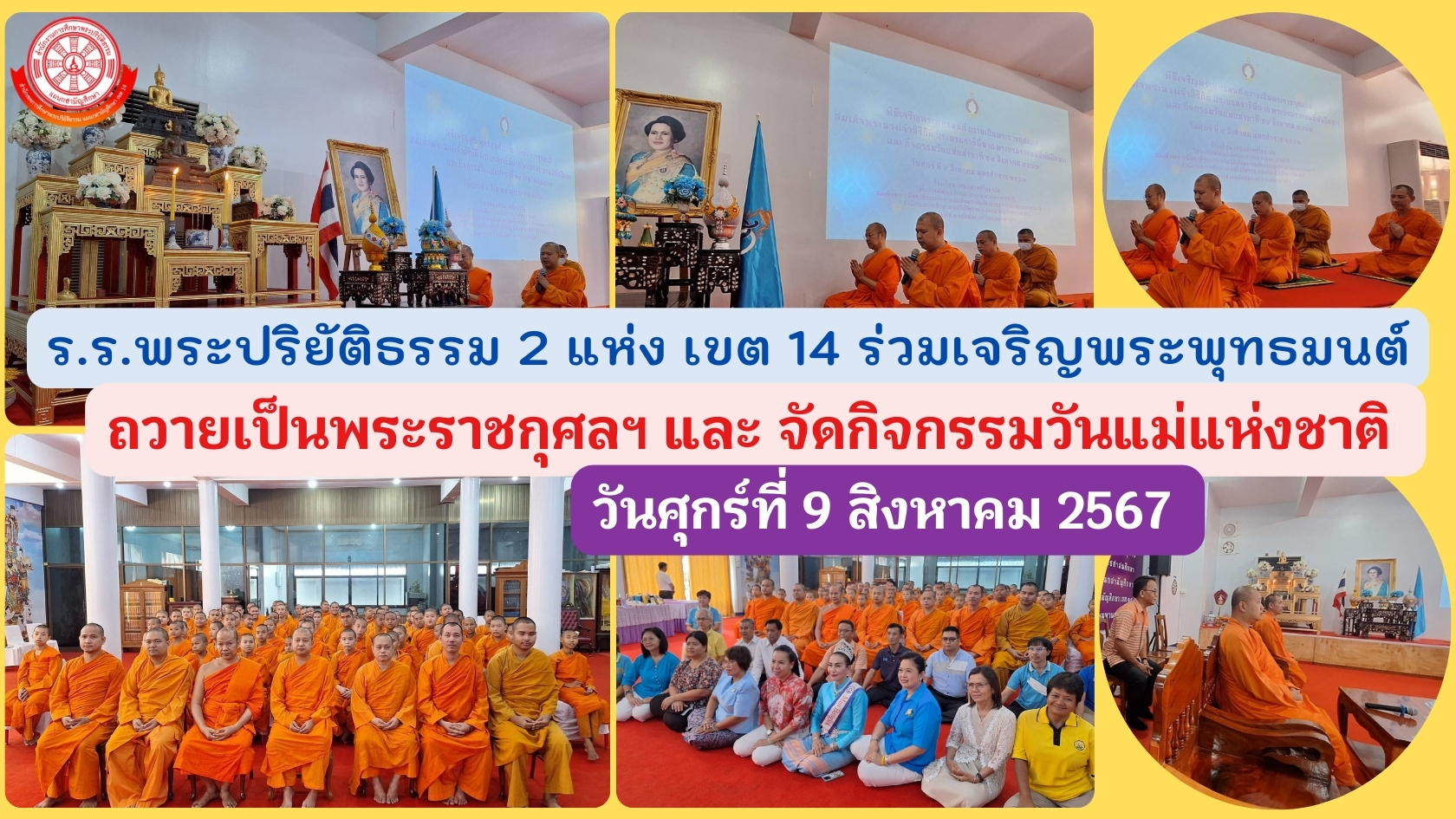 เมื่อวันศุกร์ที่ 9 สิงหาคม 2567 เวลา 13.00 น. องสรพจนสุนทร, ดร. ประธานเขตการศึกษาพระปริยัติธรรม แผนกสามัญศึกษา เขต 14 ได้เป็นประธานในพิธีเจริญพระพุทธมนต์ถวายเป็นพระราชกุศลแด่สมเด็จพระนางเจ้าสิริกิติ์ พระบรมราชินีนาถ พระบรมราชชนนีพันปีหลวง และร่วมกิจกรรมเนื่องในโอกาสวันแม่แห่งชาติ 12 สิงหาคม 2567