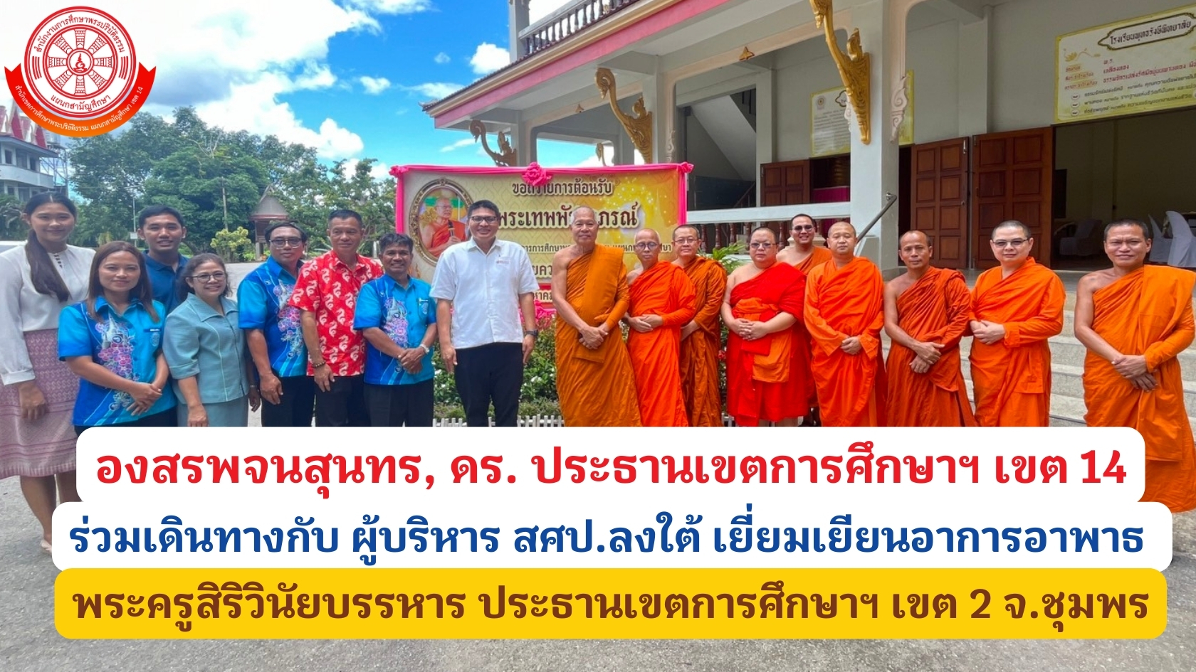 เมื่อวันที่ 16 สิงหาคม 2567 พระเทพพัชราภรณ์ ประธานกรรมการการศึกษาพระปริยัติธรรม แผนกสามัญศึกษา ได้นำคณะผู้บริหารฯ เดินทางลงพื้นที่จังหวัดชุมพร เพื่อเข้าเยี่ยมอาการอาพาธและให้กำลังใจ พระครูสิริวินัยบรรหาร ประธานเขตการศึกษาพระปริยัติธรรม แผนกสามัญศึกษา เขต 2 ณ โรงเรียนพุทธรังษีพิทยาลัย วัดราชบุรณะ อำเภอหลังสวน